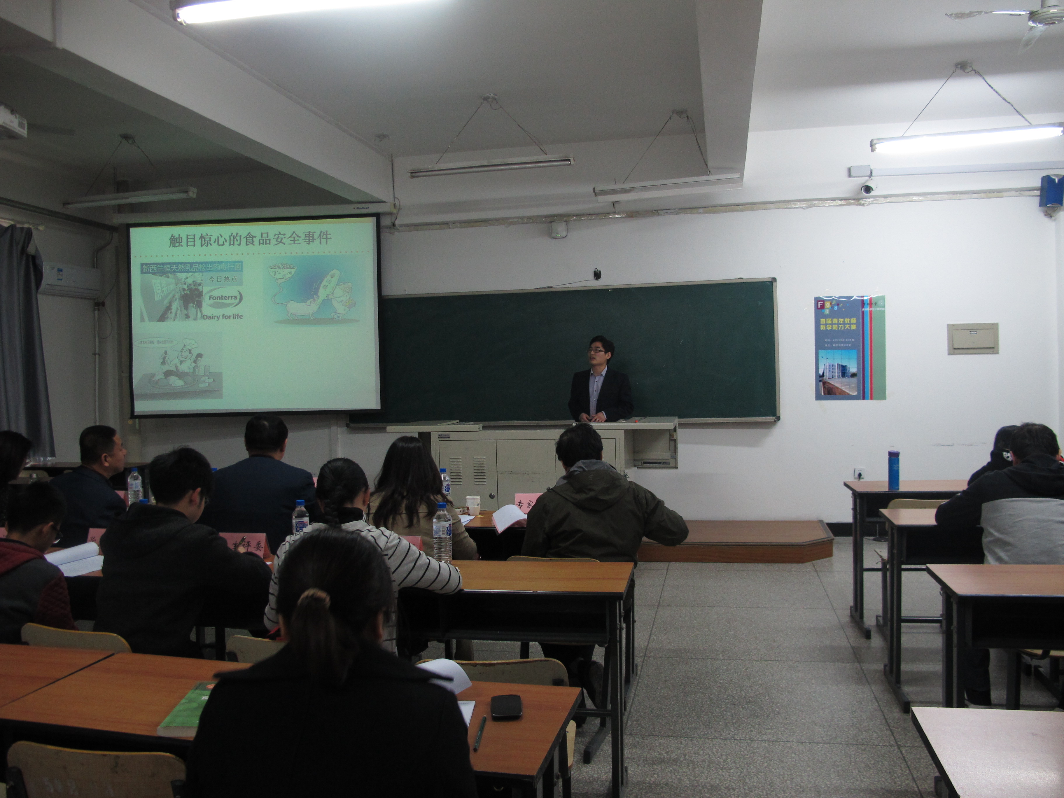 | 为了强化我院青年教师教学能力,促进我院教师教学水平的提高,响应学校开展第七届“青年教师教学大赛”和第四届“中青年教师双语教学大赛”的号召,我院于2016年4月15日8:00-12:00在科学讲堂602开展了第一届“青年教师教学比赛”和“中青年教师双语教学比赛”初赛。本次大赛由王昕副院长主持,曾凡勤督学、姚渝丽督学、高福和书记、孙永海教授、庄红教授以及五名2015级本科生担任评委,学院领导、教师以及学生也观摩了此次比赛。 “青年教师教学大赛”和“中青年教师双语教学大赛”均以课堂教学为主,参赛教师自由选择所承担课程中的部分内容进行教学。竞赛参赛顺序统一由抽签决定,各位老师进行了一场激烈而精彩的比赛。最终综合参赛选手教案书写和讲课情况,由专家评委和学生评委共同评分选出“青年教师教学比赛一等奖1名,二等奖1名,三等奖2名;“中青年教师双语教学比赛”一等奖1名,二等奖1名。 赛后,曾凡勤督学宣读了比赛结果并对此次比赛作出了鞭辟入里的总结。曾督学指出,此次参赛教师们的课堂教学,体现了我院青年教师敬业、积极的精神风貌,代表了我院先进的教学水平。孙永海教授从参赛技巧方面给各位教师提出了几点行之有效的建议,如教学者要有教学激情,参赛内容要体现专业特色等。姚渝丽教授结合教材、讲义、教案三者的关系,给予参赛者教案书写方面的建议。庄红教授则从参赛教师的仪态方面进行了点评。最后,由高福和书记进行大赛的总结。高书记指出,本次大赛让我们看到了学院教师认真的准备与完美的组织,感受到食品学院良好的精神风貌。并对教师教学能力的提升给出了“五个一定”的中肯建议,包括教学一定要熟悉教学内容,一定要运用启发式教学的方法,一定要联系实际、拓展思维,一定要反复练习、游刃有余,一定要语言生动、精神饱满。伴随着热烈的掌声,本次比赛圆满落幕! 通过这次比赛,每名参赛教师都在台上展示出自己最具风采的一面,他们挥洒自如,自信而有力,让我们充分感受到学院因为他们的存在而充满着力量,同时也祝获胜教师在接下来的比赛中能继续披荆斩棘再创辉煌!