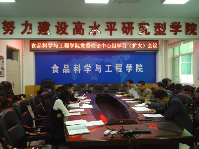 2016年12月22日,beat365中国唯一官网党委在食品楼三楼会议室召开党委理论中心组学习(扩大)会议,学习贯彻党的十八届六中全会精神以及中国共产党第十八届中央委员会第六次全体会议通过的《中国共产党党内监督条例(试行)》与《关于新形势下党内政治生活的若干准则》,深入推进“两学一做”学习教育。学院党委委员、纪委委员、各党支部书记参加了会议,会议由学院党委书记高福和同志主持。