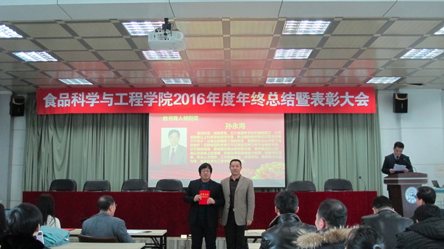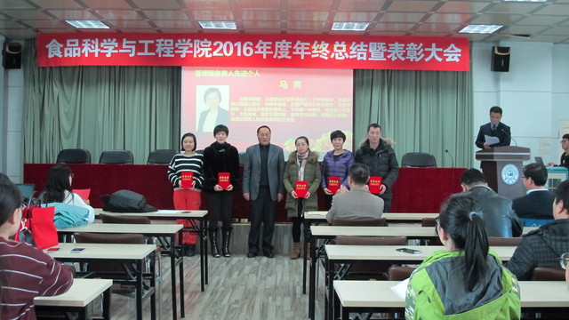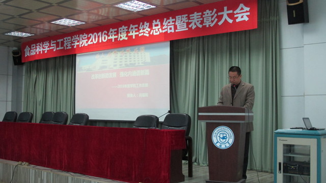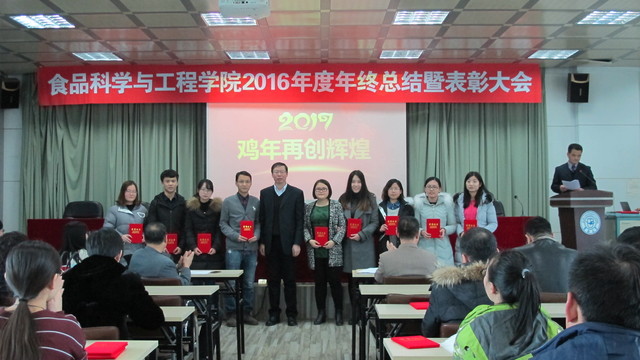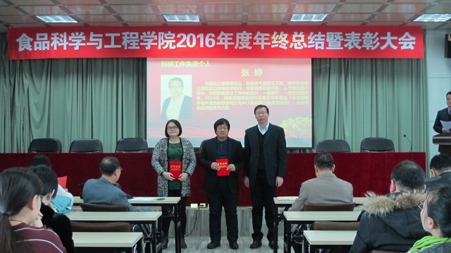 会上,副院长李勇军同志首先宣读了beat365中国唯一官网关于表彰2016年度先进单位和个人的通报,副院长张铁华同志宣读了关于2016年食品科技青年论坛获奖情况的通报,院长助理兼食品科学与工程系主任周亚军同志宣读了关于2016年本科生学术年会获奖情况的通报;会上对一年来表现突出的单位、教师和学生进行了表彰。