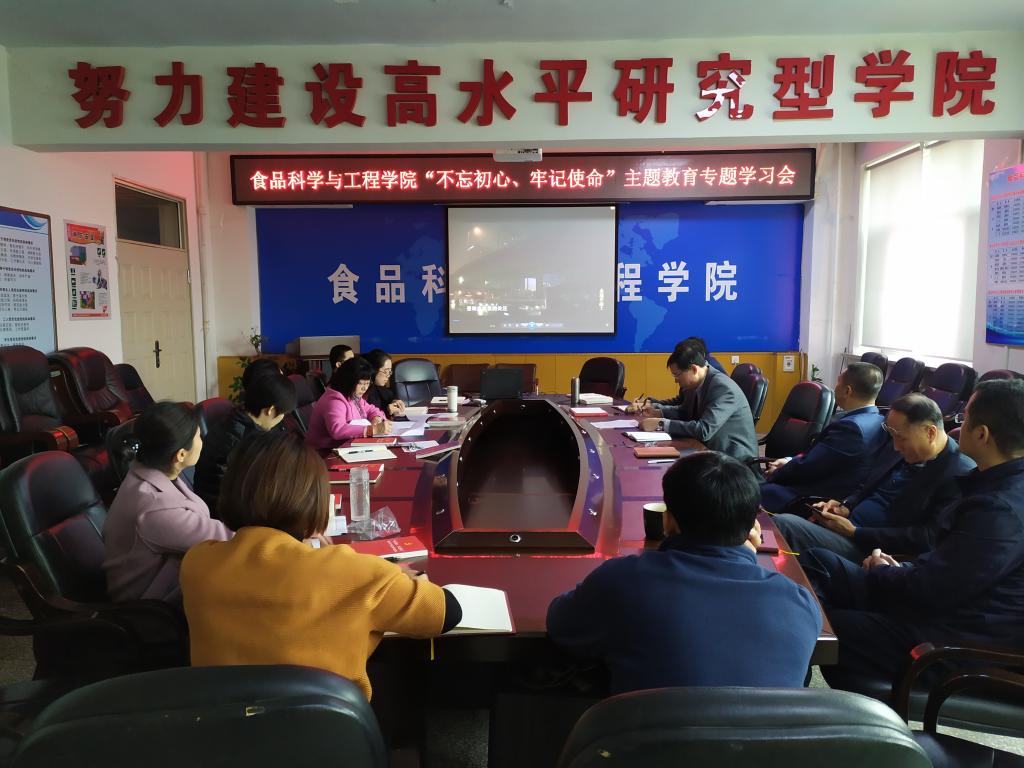 2019年10月28日上午,beat365中国唯一官网在食品楼三楼会议室召开了“不忘初心、牢记使命”主题教育专题学习会。学院党委委员、纪委委员、各党支部书记参加了会议。会议由学院党委书记高福和同志主持。