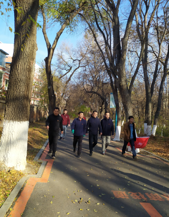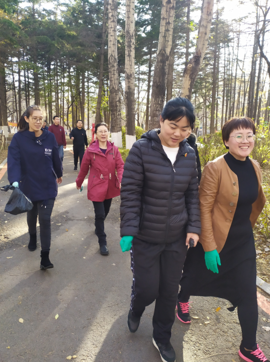 学院教职工在长春市林园开展志愿服务活动。活动中,学院教职工环绕路线“吉林大学西区林园入口—西区幼儿园侧—964医院—林园派出所—小广场—园林管理处—林苑花园--吉林大学西区林园入口”进行徒步,并对徒步沿线的白色垃圾、枯枝、破损塑料布等各种垃圾进行环保清理。志愿服务现场,学院教职工分工明确,齐心协力,干劲十足。