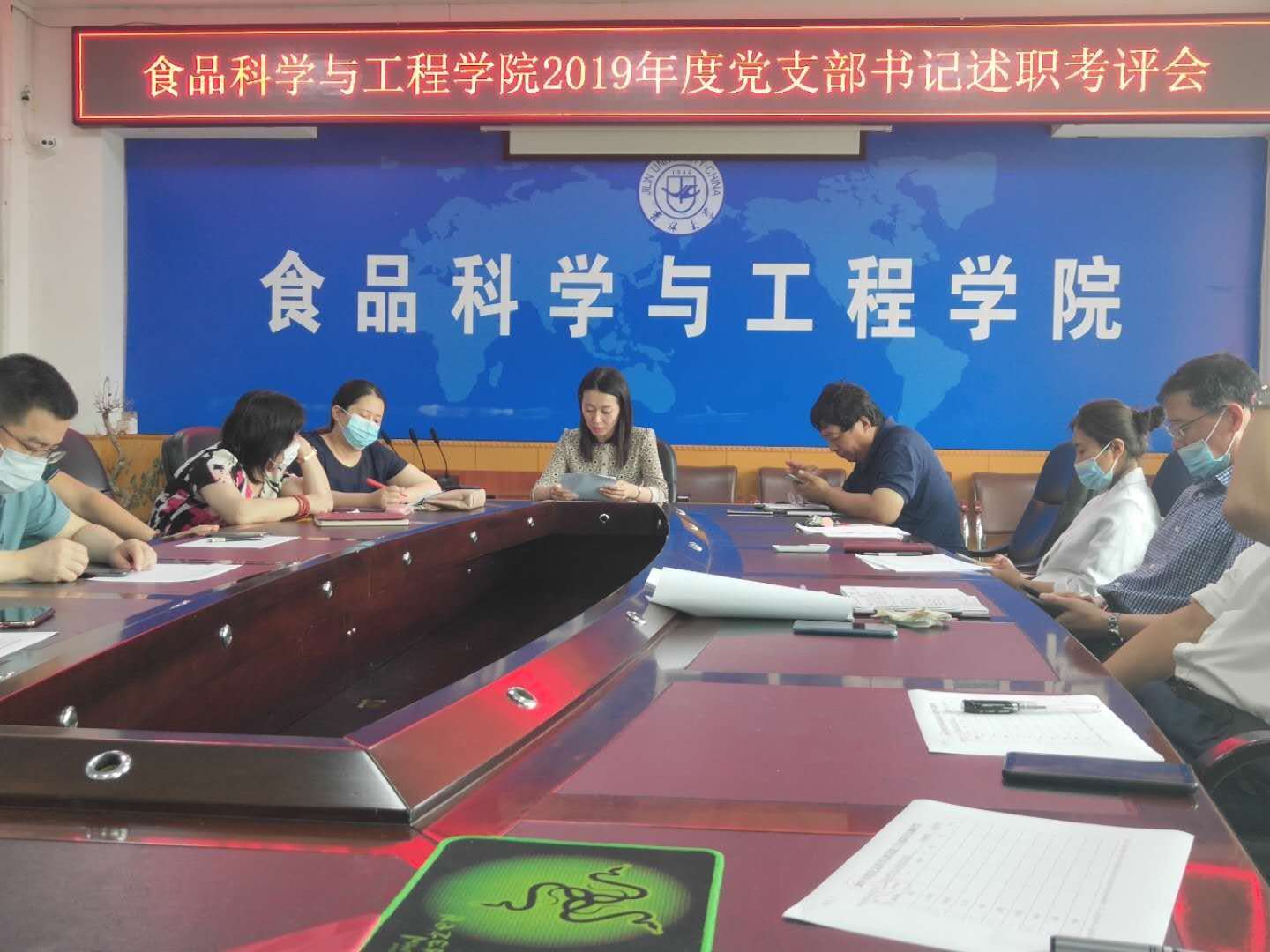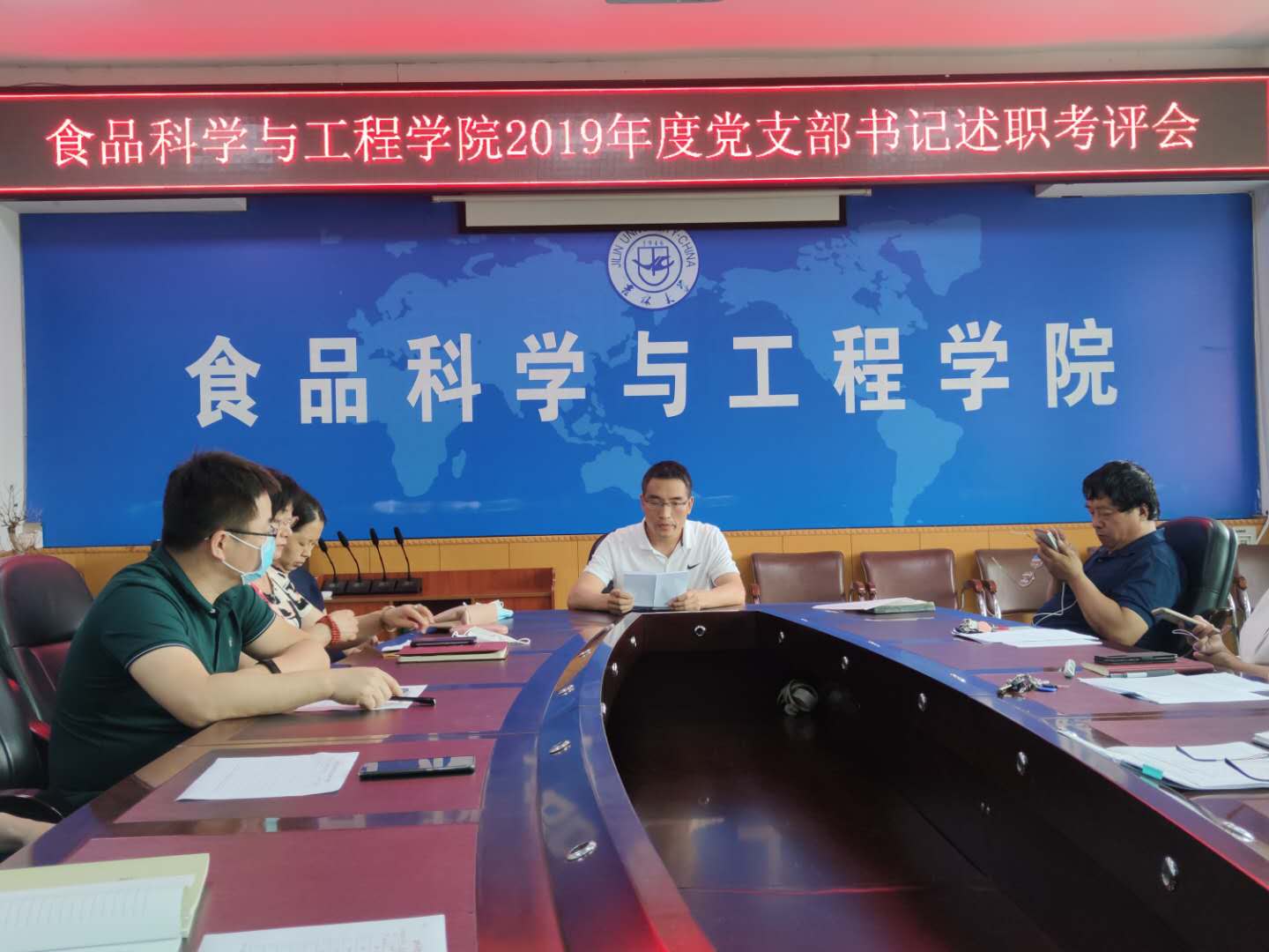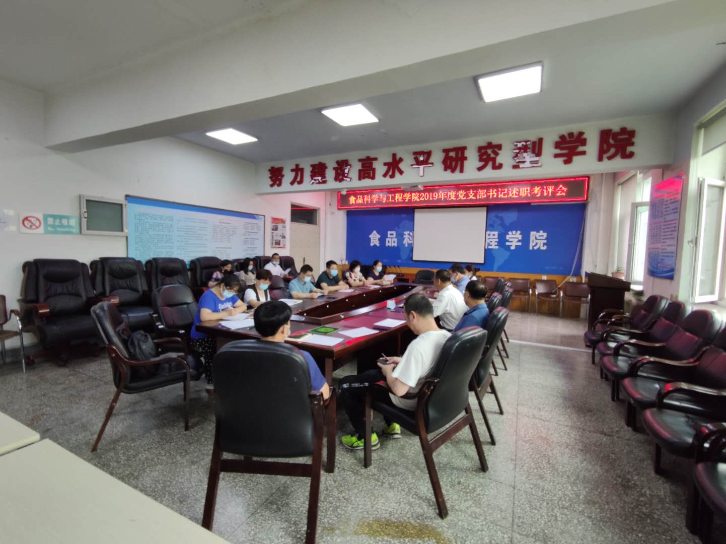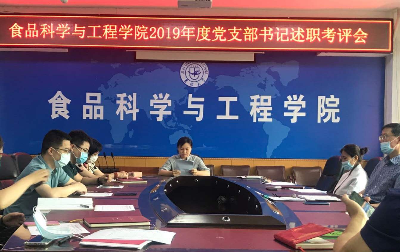 按照学校《关于开展2019年度各级党组织书记抓基层党建述职评议考核的通知》要求,2020年7月6日下午,beat365中国唯一官网在食品楼三楼会议室召开2019年度党支部书记述职考评会。学院党委委员、纪委委员、系室主任、各党支部书记参加了会议。会议由学院党委书记高福和同志主持。