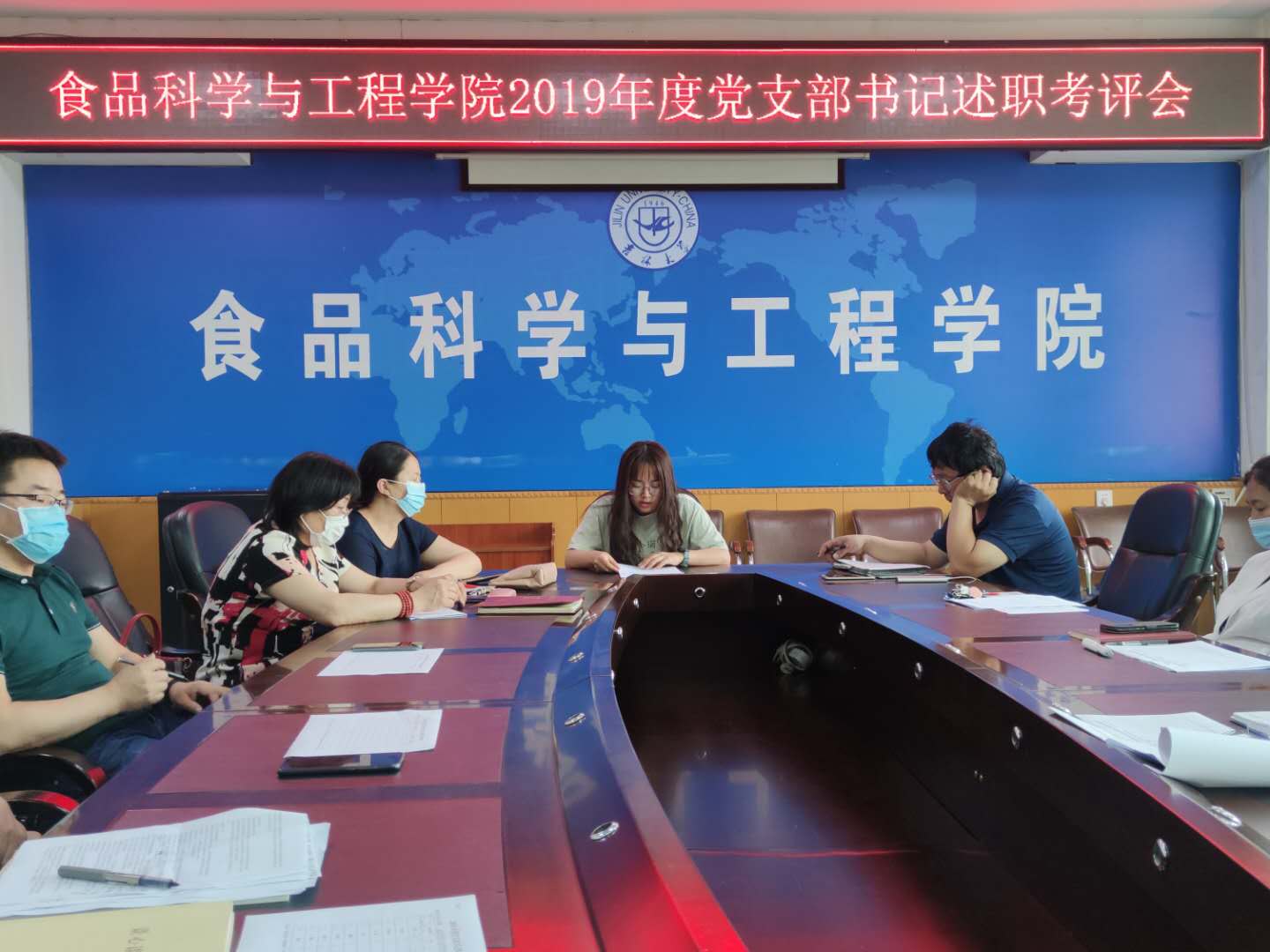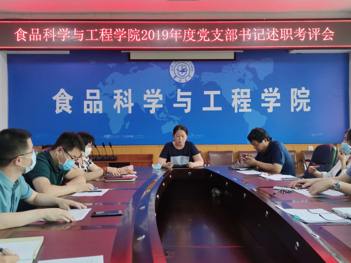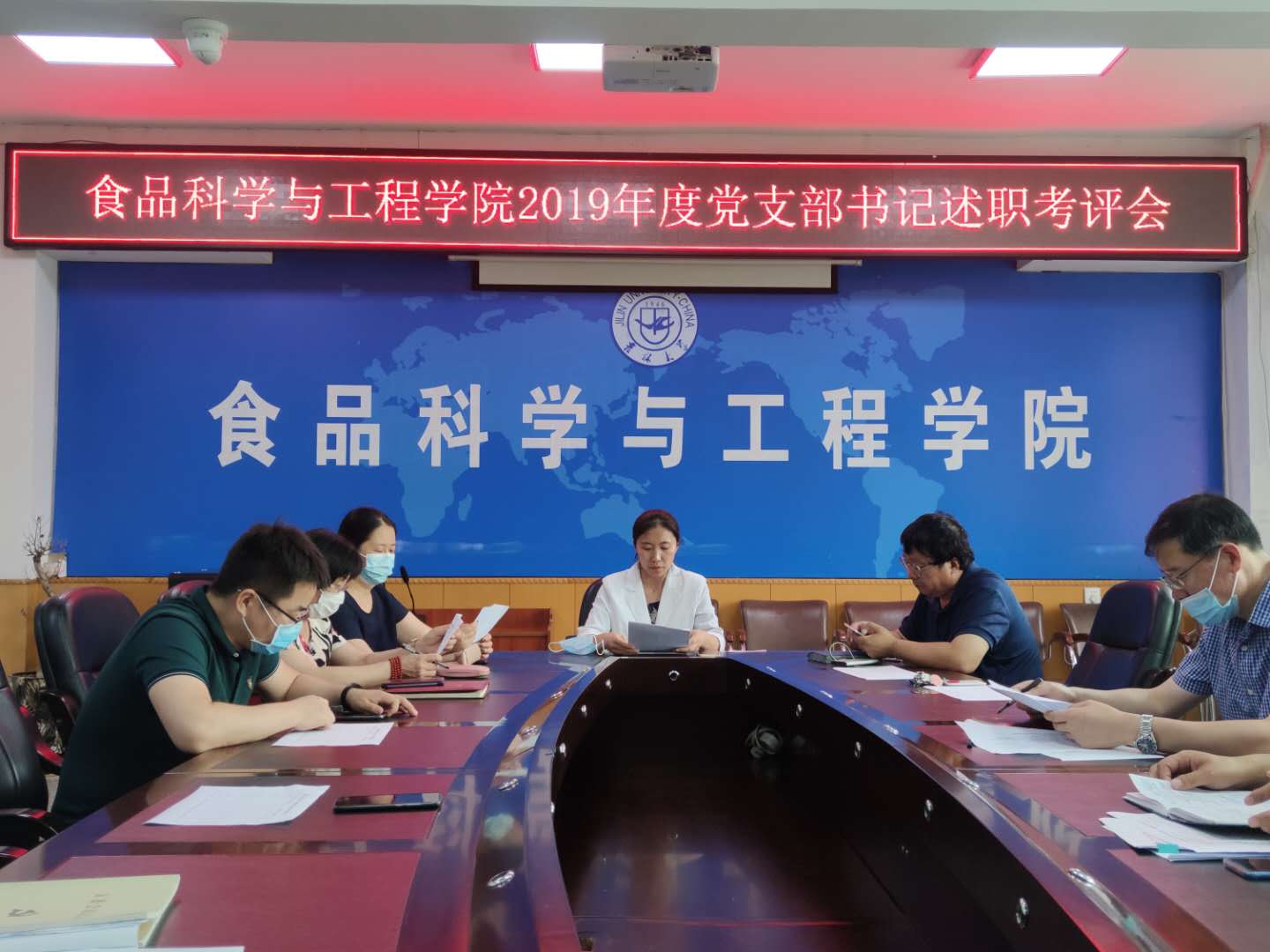 按照学校《关于开展2019年度各级党组织书记抓基层党建述职评议考核的通知》要求,2020年7月6日下午,beat365中国唯一官网在食品楼三楼会议室召开2019年度党支部书记述职考评会。学院党委委员、纪委委员、系室主任、各党支部书记参加了会议。会议由学院党委书记高福和同志主持。
