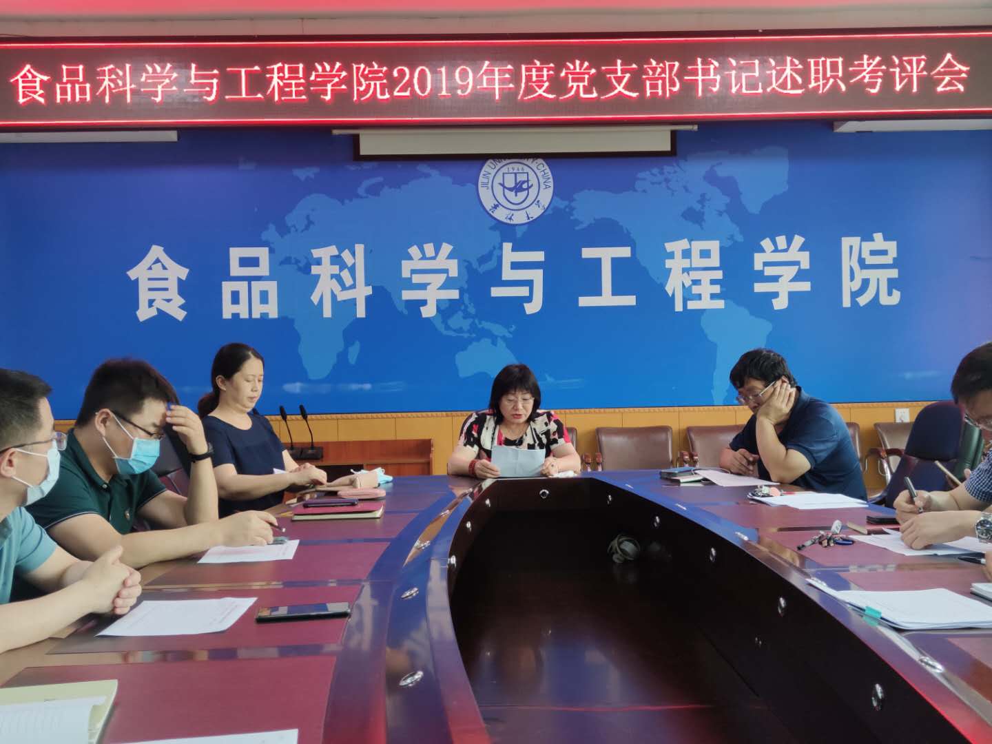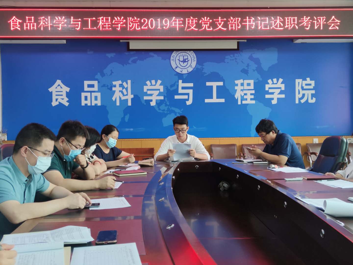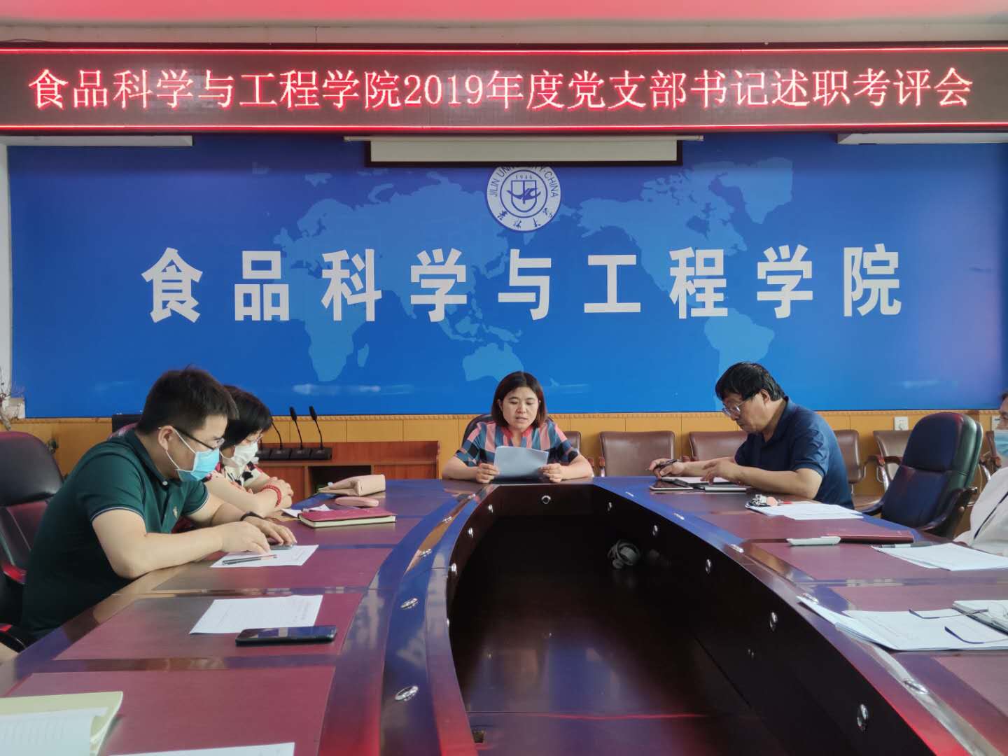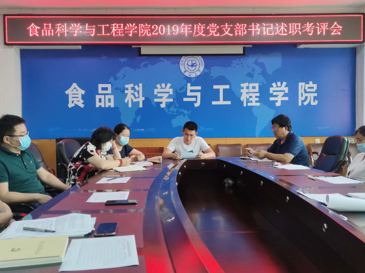 按照学校《关于开展2019年度各级党组织书记抓基层党建述职评议考核的通知》要求,2020年7月6日下午,beat365中国唯一官网在食品楼三楼会议室召开2019年度党支部书记述职考评会。学院党委委员、纪委委员、系室主任、各党支部书记参加了会议。会议由学院党委书记高福和同志主持。