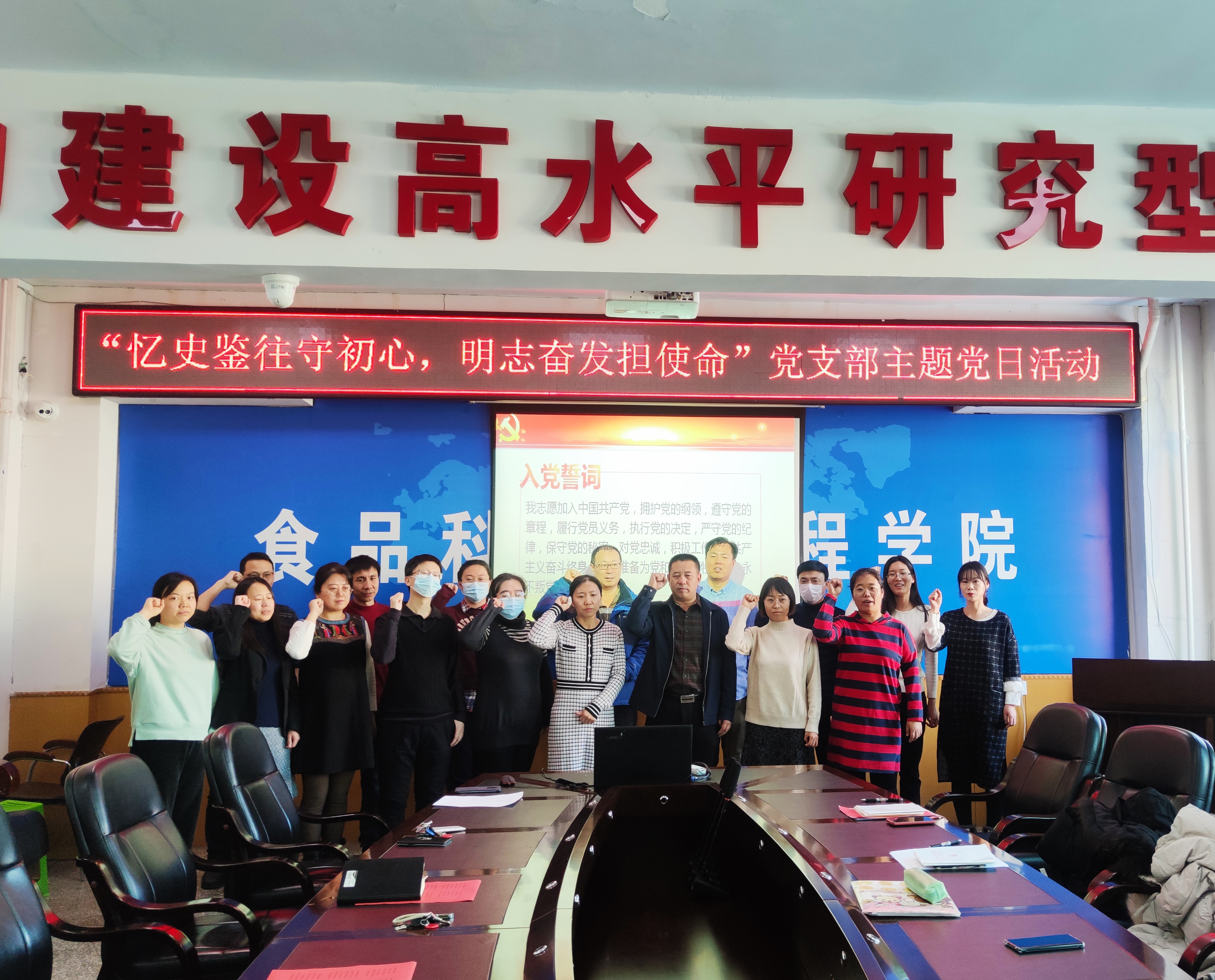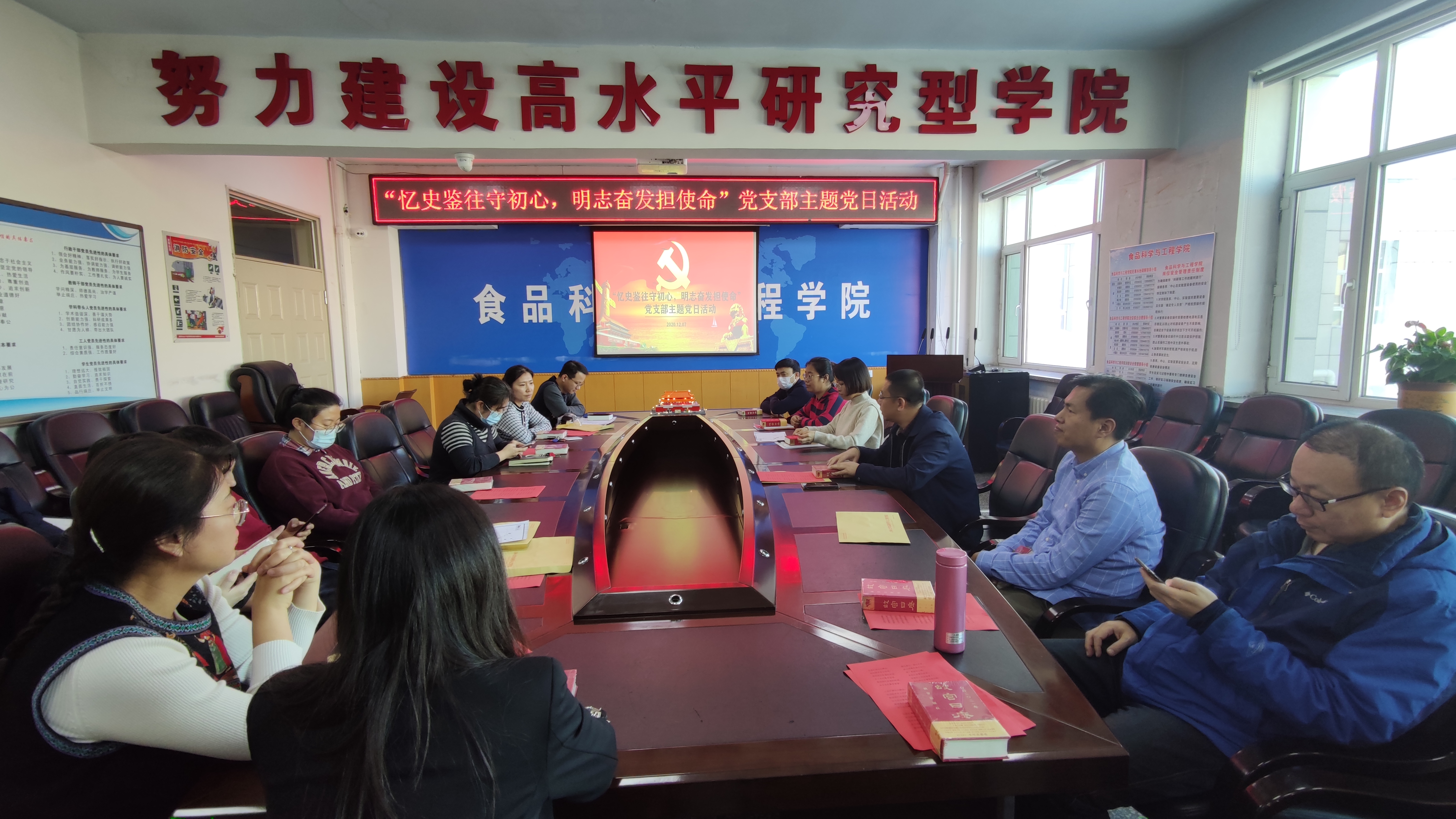 根据“不忘初心、牢记使命”主题教育部署安排,贯彻落实“不忘初心、牢记使命”主题教育精神,2020年12月7日下午,beat365中国唯一官网机关党支部与食品质量与安全系教师党支部在食品楼三楼会议室举办“忆史鉴往守初心,明志奋发担使命”主题党日活动。主题党日活动由学院机关党支部书记马爽同志主持。