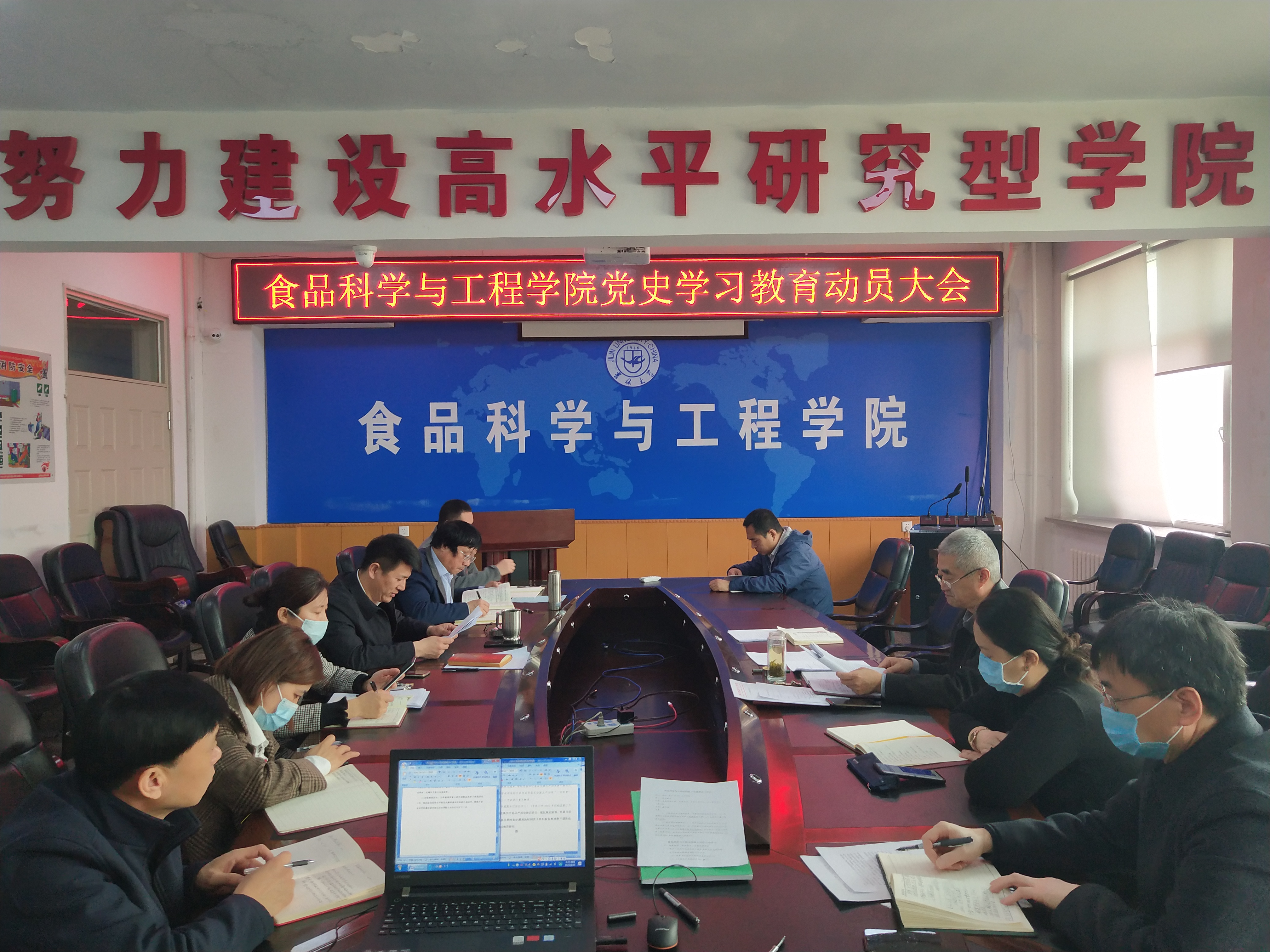 根据学校党史学习教育工作要求,2021年4月15日上午9时,beat365中国唯一官网在食品楼三楼会议室召开党史学习教育动员大会,对学院党史学习教育进行全面动员部署。学院领导班子成员、党委委员、纪委委员,各党支部书记参加了会议。学院其他教职工党员通过企业微信在线上参加了会议。会议由学院党委书记董怀智主持。