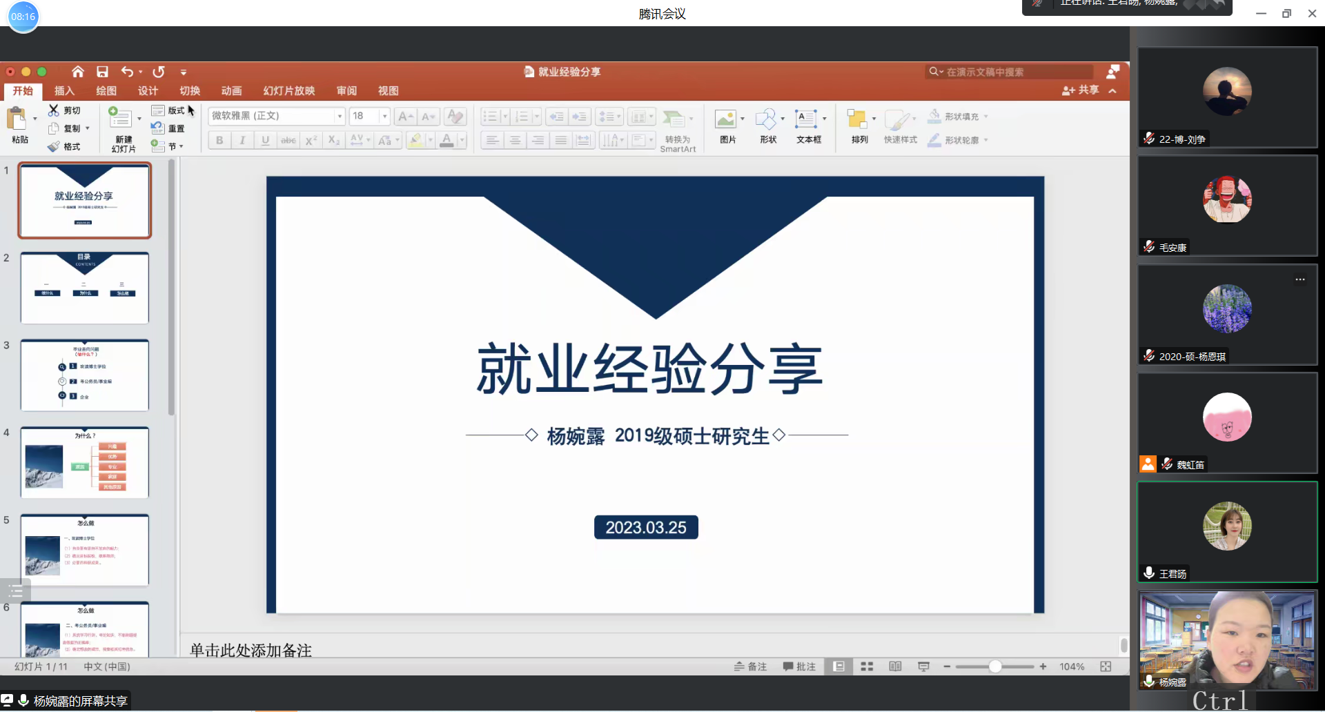 为帮助研究生更好地规划学习与职业生涯、了解当前就业形势、提高同学们就业竞争力、解决求职过程中存在的疑难问题,3月25日18:30,beat365中国唯一官网研究生会邀请三位2022届优秀毕业研究生,通过腾讯会议面向全体研究生开展了主题为“面对职场,规划未来”就业经验分享会。