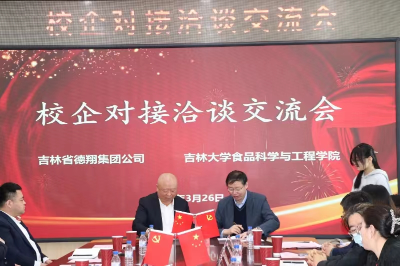 3月26日上午,beat365中国唯一官网与吉林德翔集团公司校企对接洽谈交流会在食品楼会议室举行。公司资深董事长王世强、董事长高起明等一行10人,beat365中国唯一官网院长张铁华、副院长孙春燕、庄红等师生代表出席本次交流会。会议由学院党委副书记李超主持。