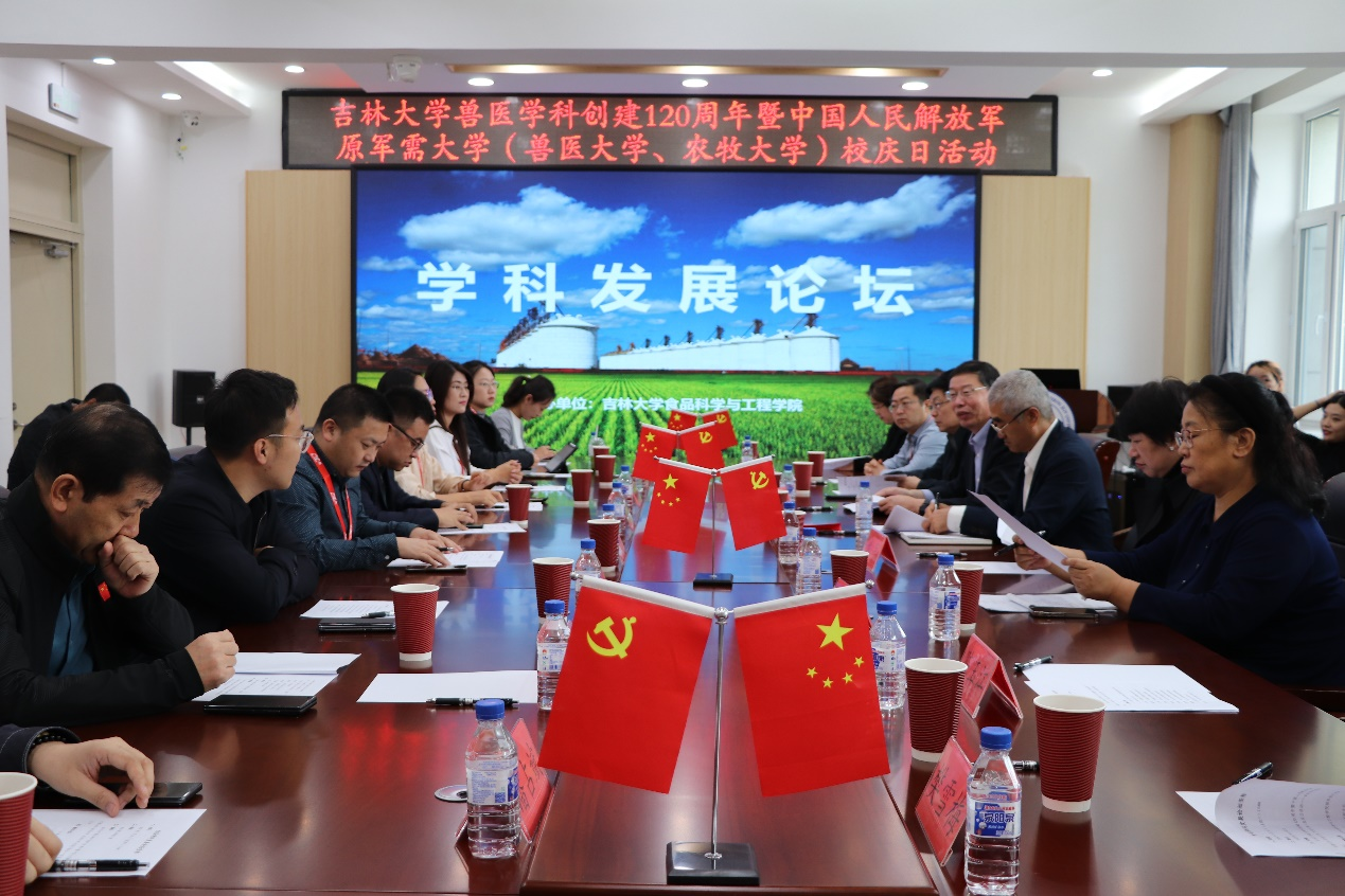 双甲春秋铸辉煌,百廿年华谱新章。9月21日,吉林大学兽医学科创建120周年暨中国人民解放军原军需大学(兽医大学、农牧大学)校庆日庆祝活动在吉林大学和平校区隆重举行,数百名校友回校参加庆祝活动。当天下午,学院举办了食品学科发展论坛,学院领导、知名校友和优秀毕业生代表及师生代表二十余人欢聚一堂,畅谈校友情谊,共谋学科专业发展。院长张铁华主持座谈。