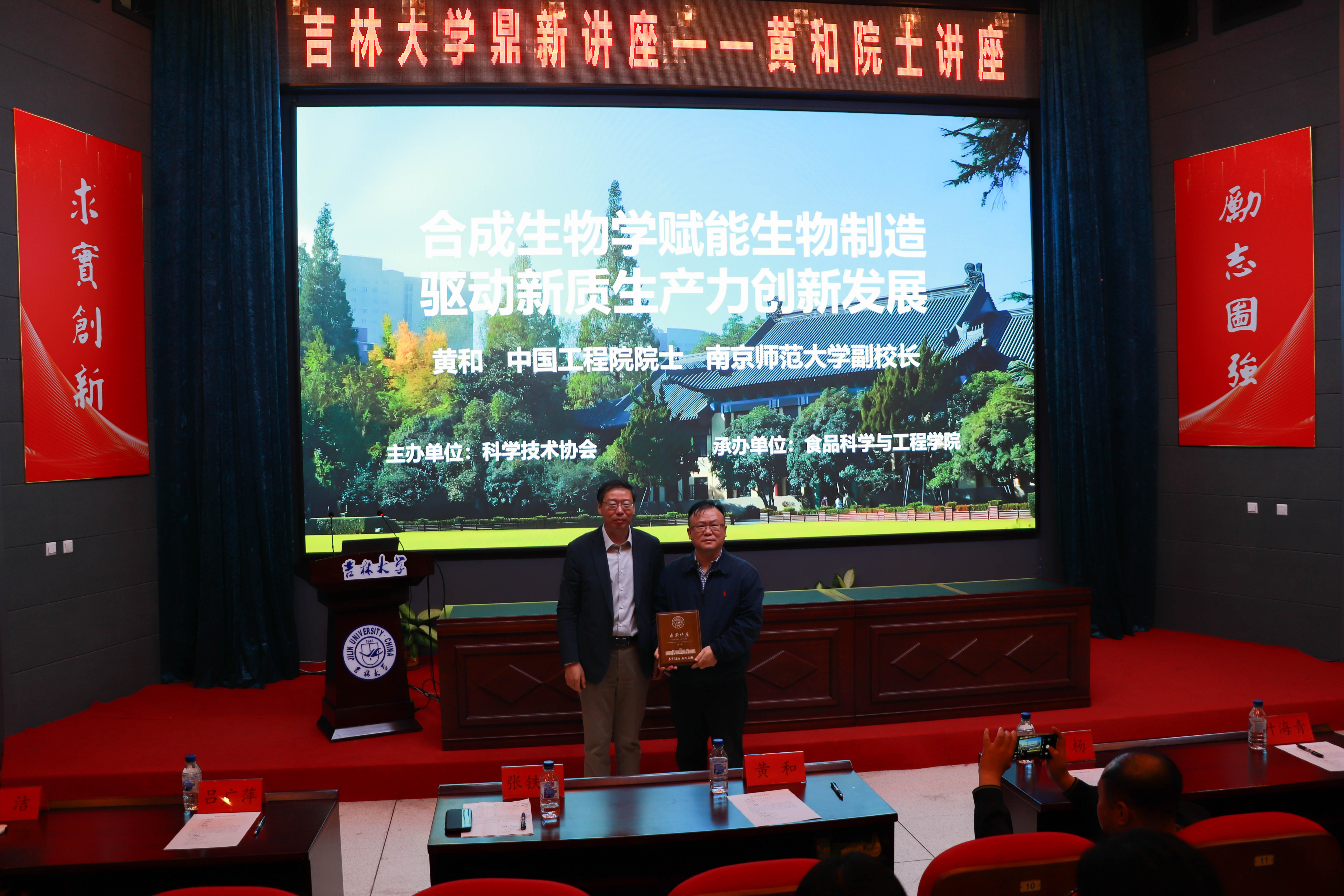 讲座结束,为黄和院士颁发了“吉林大学鼎新讲座纪念牌”。