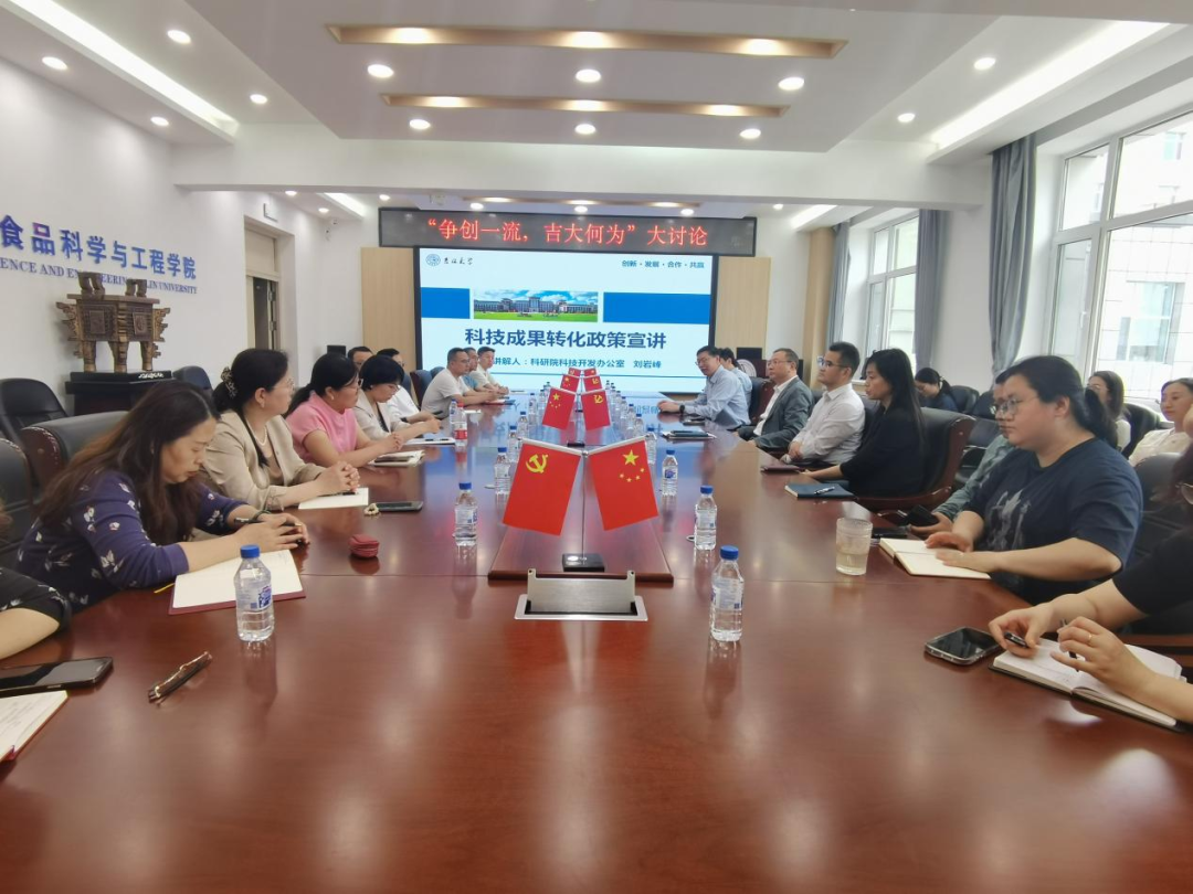 张铁华介绍了学院近年来科技成果转化情况,就成果转化过程中所遇到的政策和技术问题进行了交流。他指出,食品科学与工程学科具有典型的应用学科特征,学院也积累了很多应用型成果,理应在科技成果转化方面取得更大成绩。未来,学院将通过优化评价体系,引导更多教师把科技成果转化作为重要方向,不断提升服务经济社会发展的支撑力。