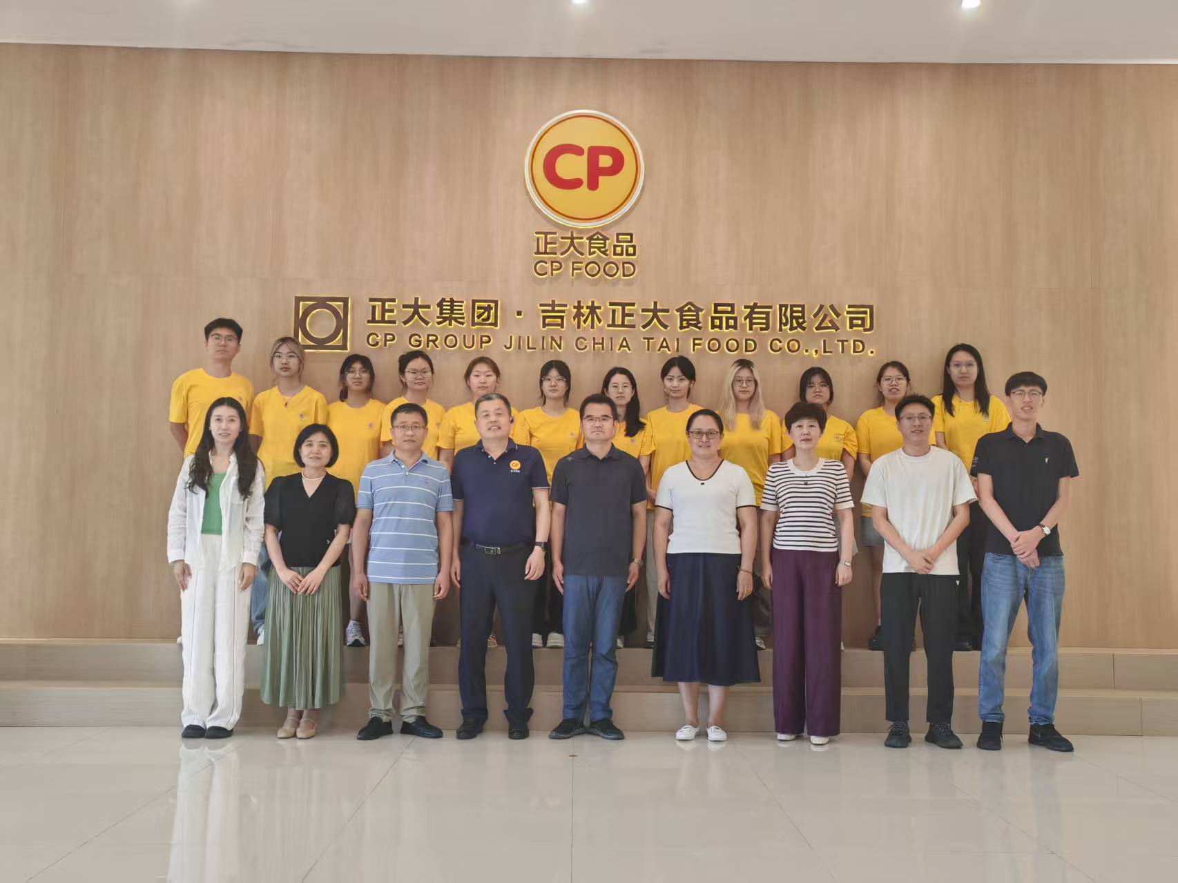 会上,正大集团司马海威总监对吉大师生来访表示热烈欢迎,介绍了正大集团在东北地区农牧食品全产业链的布局,及榆树正大食品有限公司的整体情况、业务发展、技术需求、岗位人才招聘等情况。学院梅士伟书记对正大公司的接待表示感谢,就学院发展、科技攻关、服务社会、人才培养等情况进行了介绍,他表示本次到正大食品公司调研洽谈,是魏新刚董事长到访学院后,校企共建合作的再深化再推进,希望学院利用学科优势,帮助企业攻克技术难题,将科学研究转化为社会生产力,推进校企合作进一步走深走实。叶海青副院长就食品产品研发、专利转化、技术瓶颈难题等关键技术与高丽副总裁进行交流探讨,并给予技术帮扶和指导,积极探索科研攻关合作项目和校企共建结合点。同时,学院学工办主任郝慧、团委书记王新欣分别就校外社会实践、实习实训、就业招聘、毕业生培养路径等方面与企业领导进行交流讨论,现场气氛热烈。