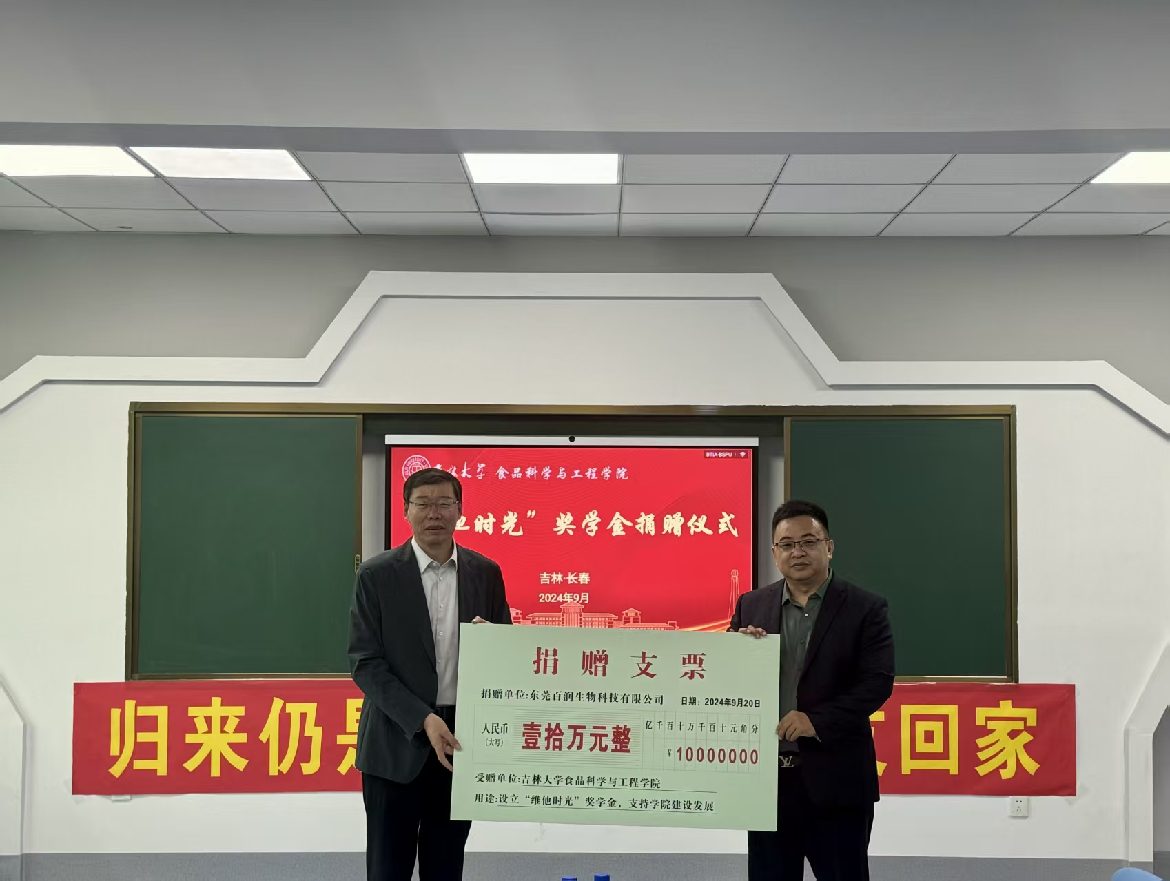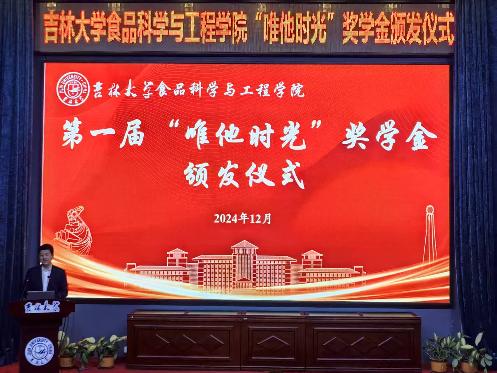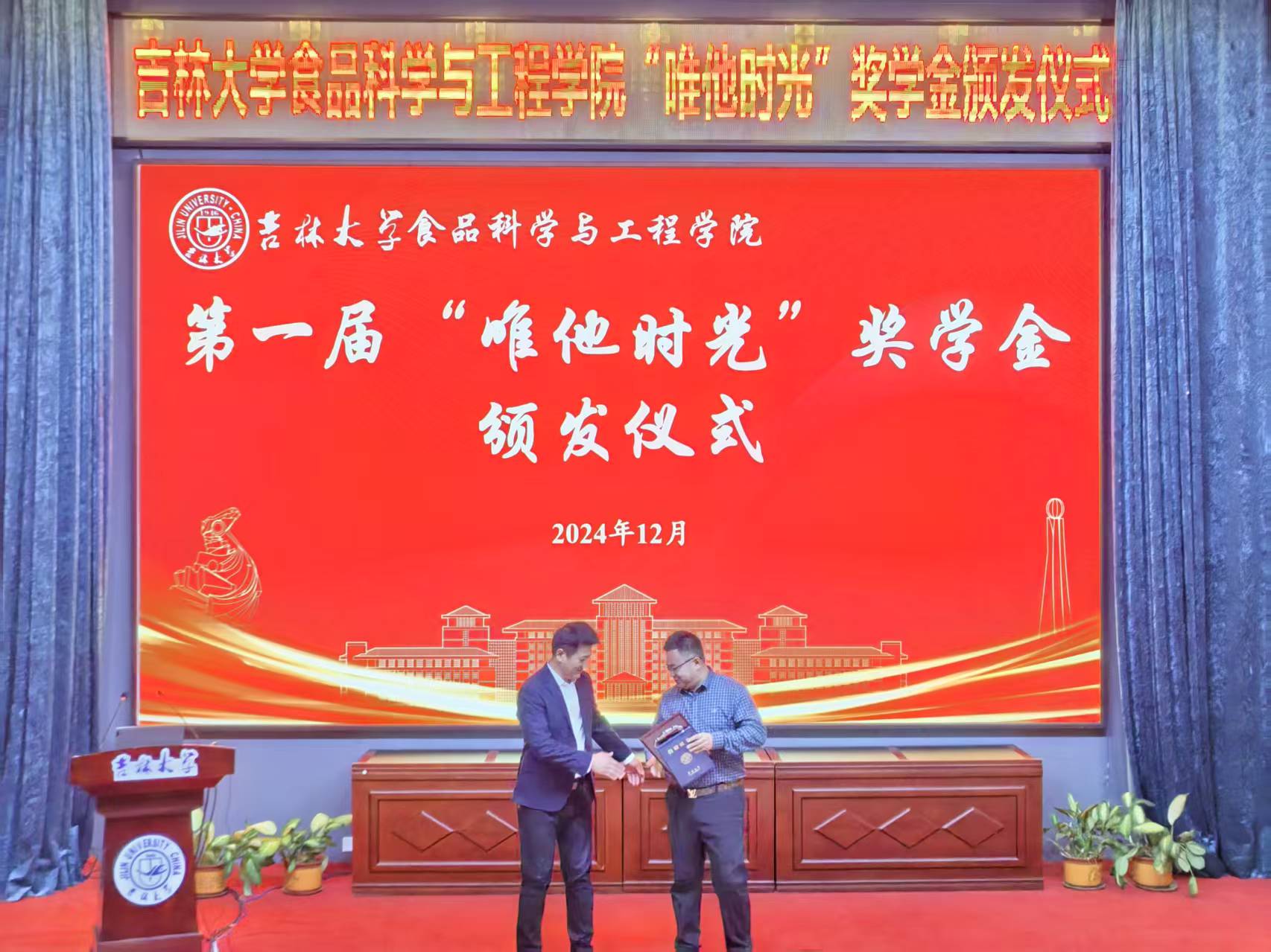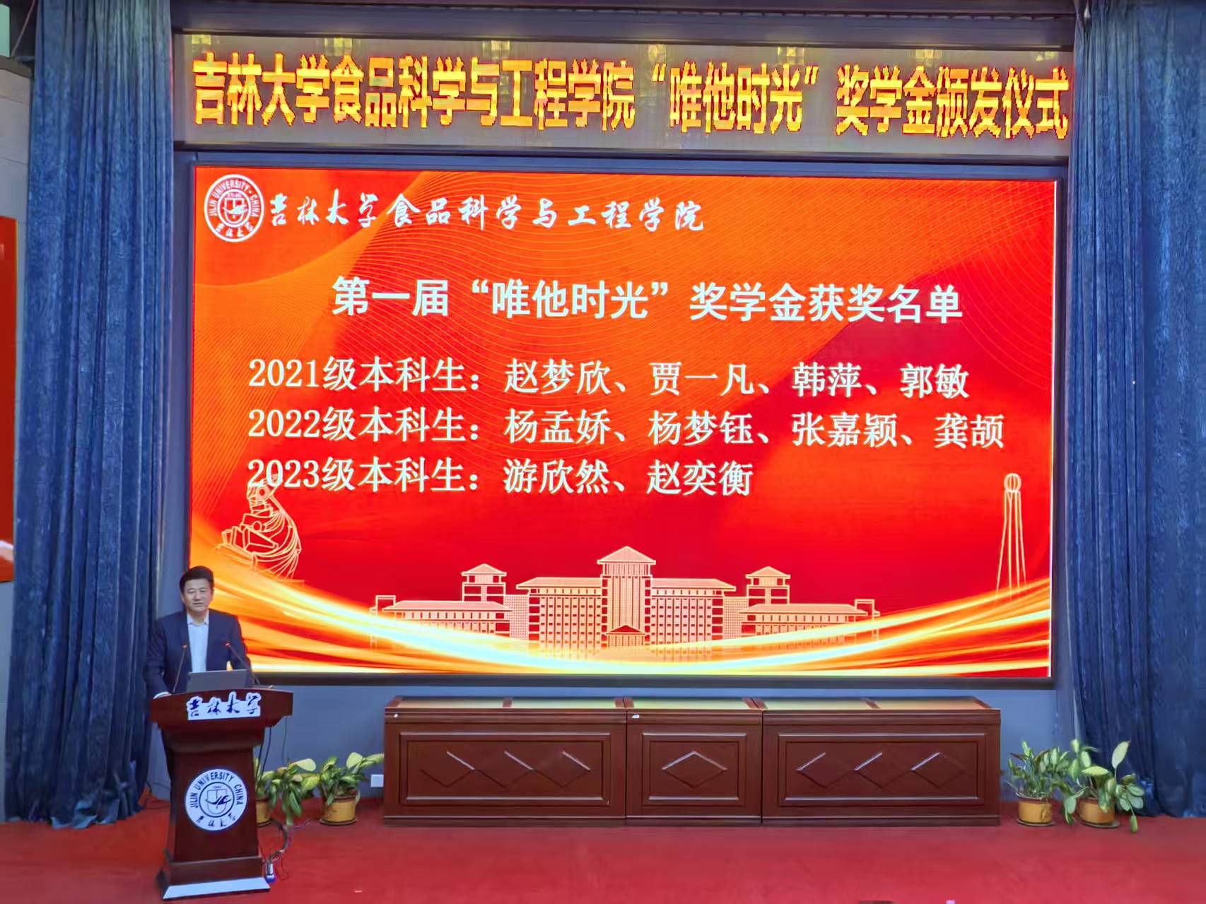 赵法利总经理向获奖学生们送上了真挚的赠言寄语。他表示,这份奖学金凝聚他对母校的感恩和感情,鼓励同学们要热爱专业,热爱母校,刻苦学习,锻炼本领,在食品行业中贡献吉大食品人的青春力量。