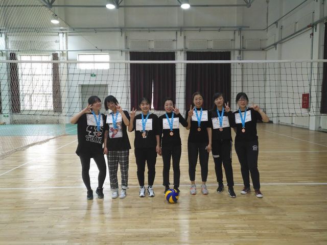 我院女子排球队由2014级马丽捷、2015级刘美彤王欢许雅宁王一凡,与2016级窦纯、王枫3个年级学生组成,在之前的抽签分组中,我院与通信学院、商学院和动物医学学院分为一组。第一天进行小组赛,队员们在赛场上挥洒汗水、奋力拼搏,最终三战全胜,以小组第一的成绩出线。第二天的比赛中,我院首先和临床医学学院对战,遗憾败北。在争夺三、四名的比赛之中,我院击败对手获得了第三名的好成绩。队员们互相配合,相互鼓励,每一个传球都凝聚着智慧与团结,每一次接球都尽显他们青春的活力,整个赛场上充满呐喊、助威、喝彩、拼搏、活力。