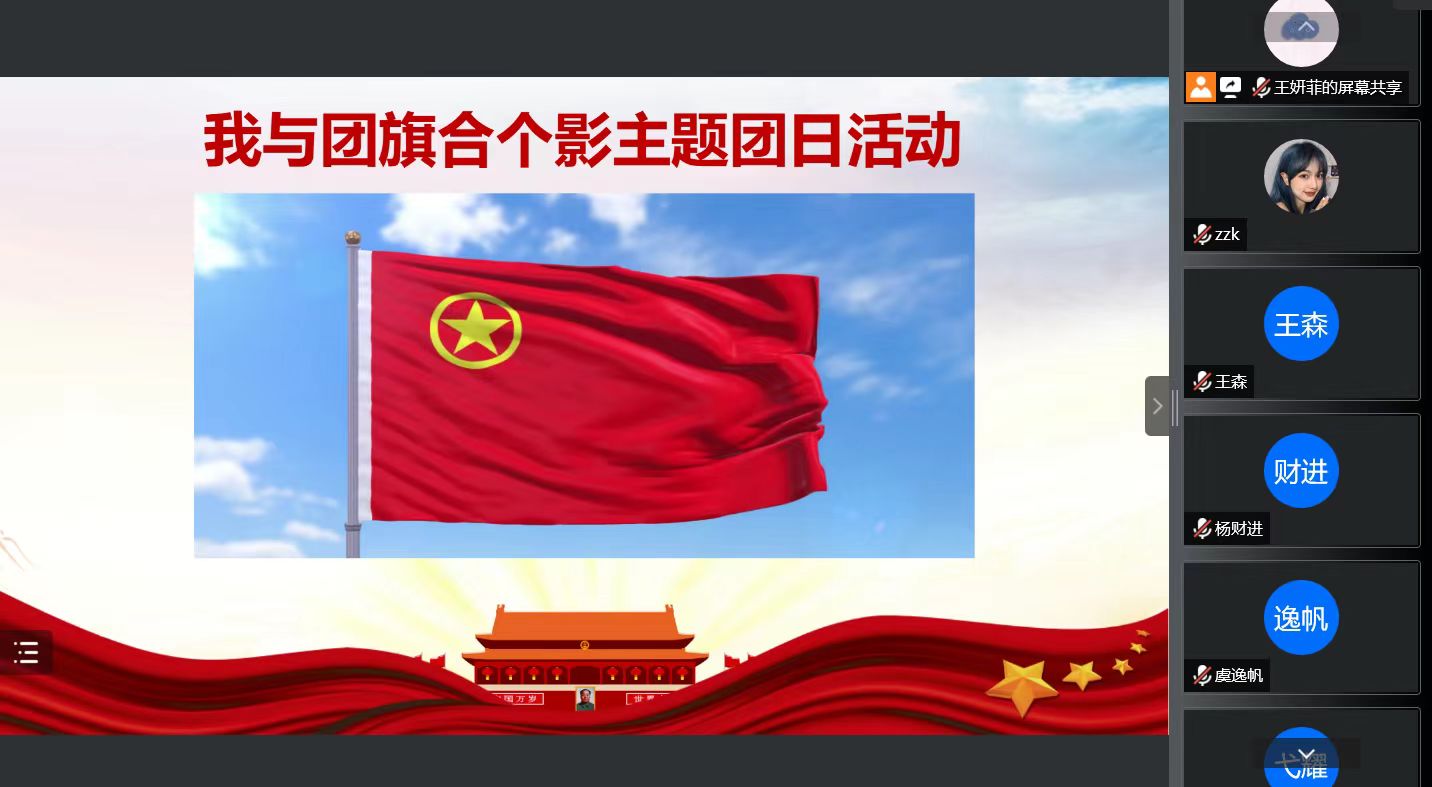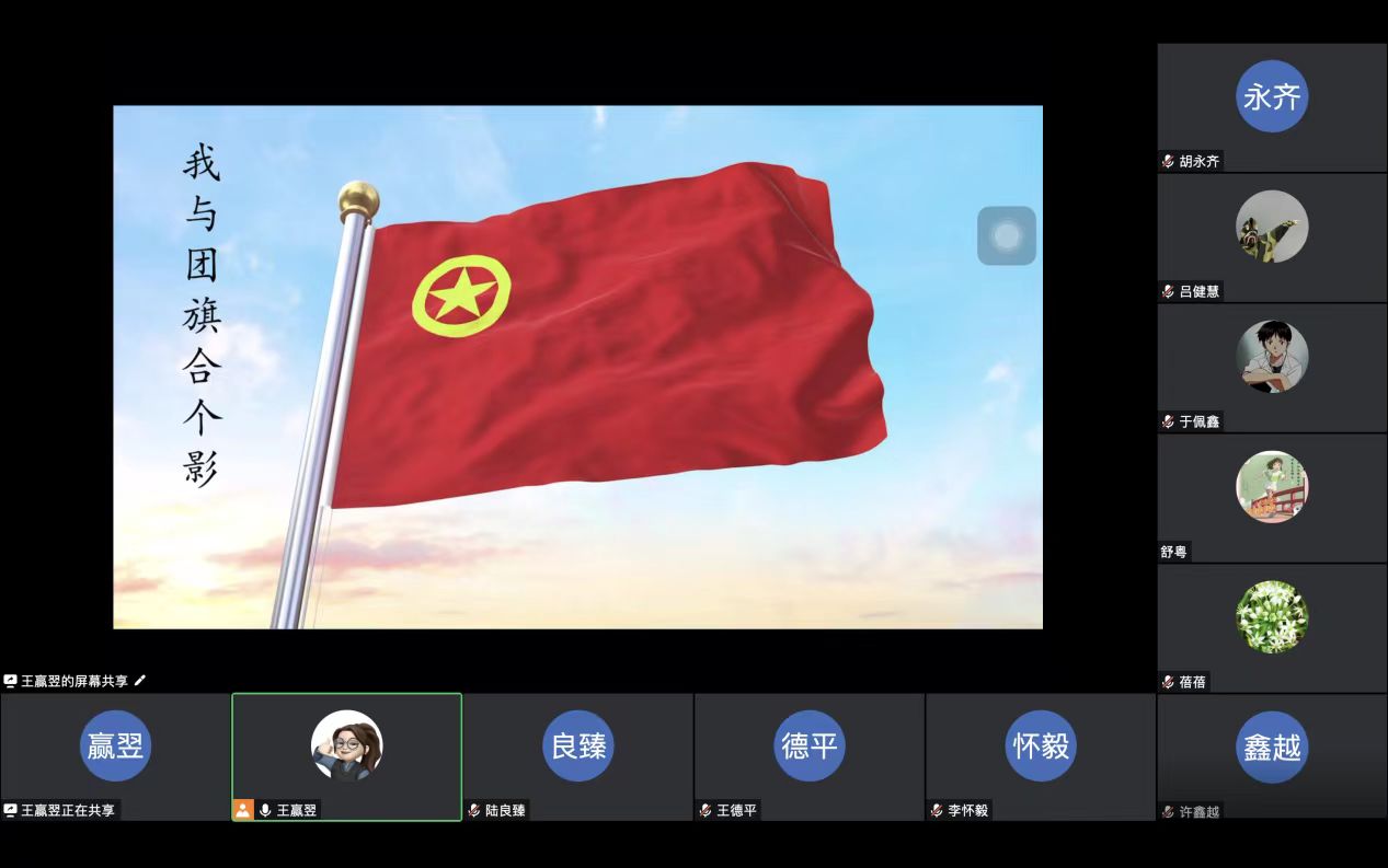 beat365中国唯一官网本科生2020级3班团支部于2023年5月18日组织开展了“我与团旗合个影”主题团日活动,本次团日活动在线上举行,团支书戴玥主持,2020级3班全体团员参加。