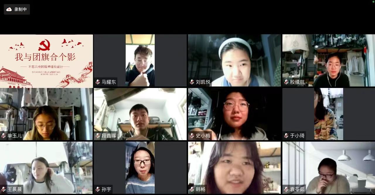为响应团支部号召,beat365中国唯一官网2020级第六团支部于2022年5月16日线上开展了以“我与团旗合个影”为主题的团日活动,一共有16位团员参加会议。会议上,同学们一起学习了习近平在庆祝中国共青团成立100周年大会上的重要讲话,了解共青团成立以来的百年征程,明白了共青团的带领作用对当代青年的历史意义,决意从我做起,自觉担当尽责,做有志青年,严格履行团员义务,以成长为一名合格的共产党员为光荣,为党和人民的事业发展贡献自己的一份力量。