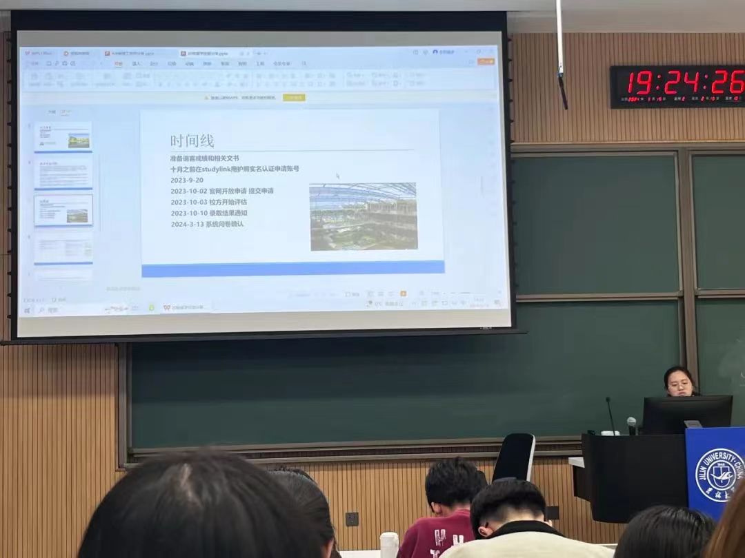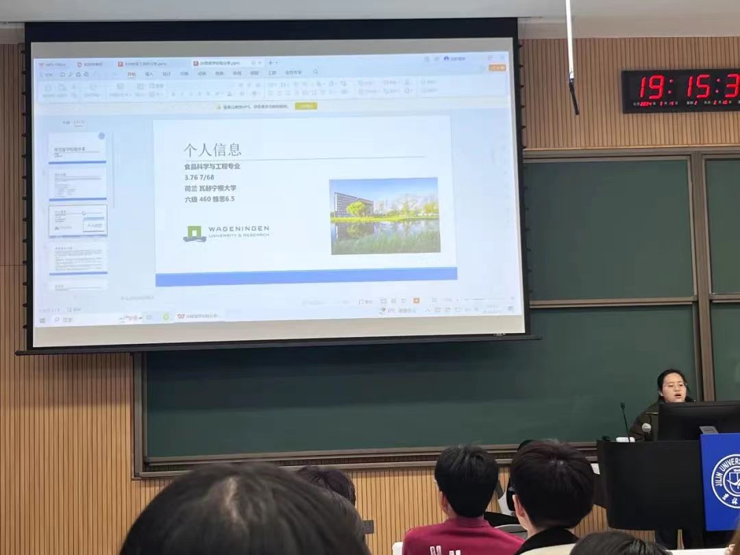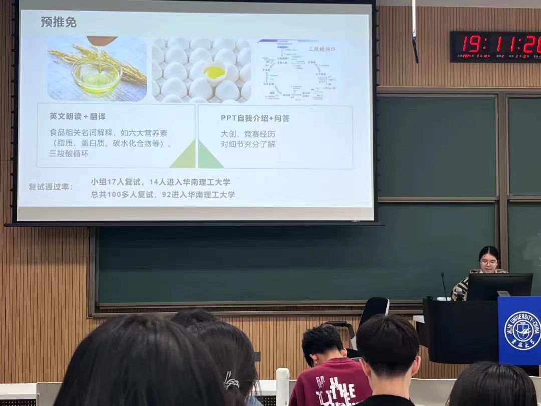 最后,户婉凝学姐分享了英语六级和雅思的学习经验,侧重于保研至国外的道路具体介绍了准备过程、学习方法等。让同学们更详细地了解到这条路的发展前景。
