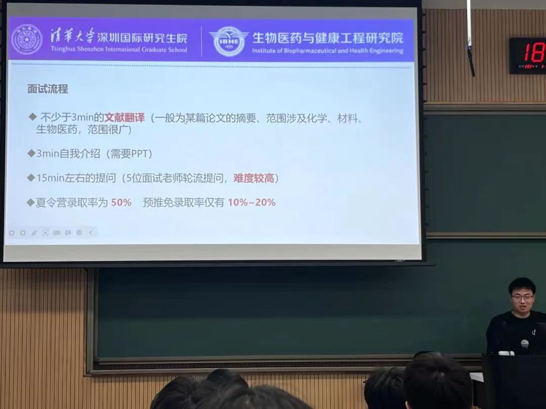 潘培蓓学姐以夏令营预推免的经历,从学硕和专硕二者之间的区别以及不同的侧重方向向同学们介绍了一条新的发展道路。同时她提出参加不同学校开展的夏令营活动能够增加更多成功的机会,并鼓励同学们利用课余时间丰富自己的简历。