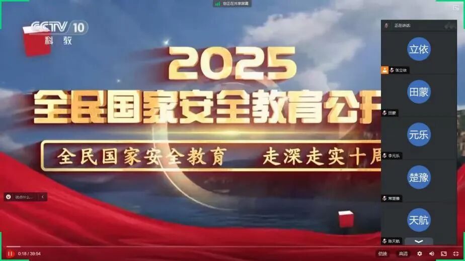2025年4月16日,2022级1班同学通过腾讯会议,共同观看了《国家安全,你我同行》专题教育片。宣传片以案例分析形式,系统阐述了政治安全、网络安全、生物安全等领域的风险挑战,强调青年群体在维护国家安全中的使命担当。本次活动通过“学、赛、议”结合的形式,深化了团员对国家安全的理解,推动理论转化为行动。