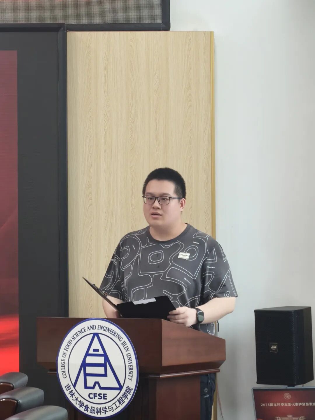 2025届毕业博士研究生代表李亚娟和本科毕业生代表林慧凯先后发言,分享了自己在专业知识学习、科研探索、社会实践中的点滴回忆与成长故事,表达了对母校、导师、同学的感激之情,并表示将秉承吉大学子“四实”品格,传承食品学院“四为”精神,在新征程中书写新一代食品学子的使命担当。