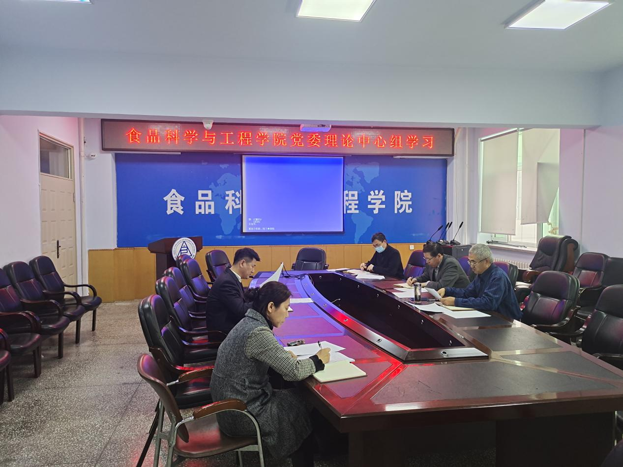 11月17日下午,beat365中国唯一官网在食品楼三楼会议室召开党委理论中心组学习会议。专题学习传达党的十九届六中全会精神和《中国共产党十九届六中全会公报》内容。学院党委理论中心组成员参加了会议,会议由党委书记董怀智主持。