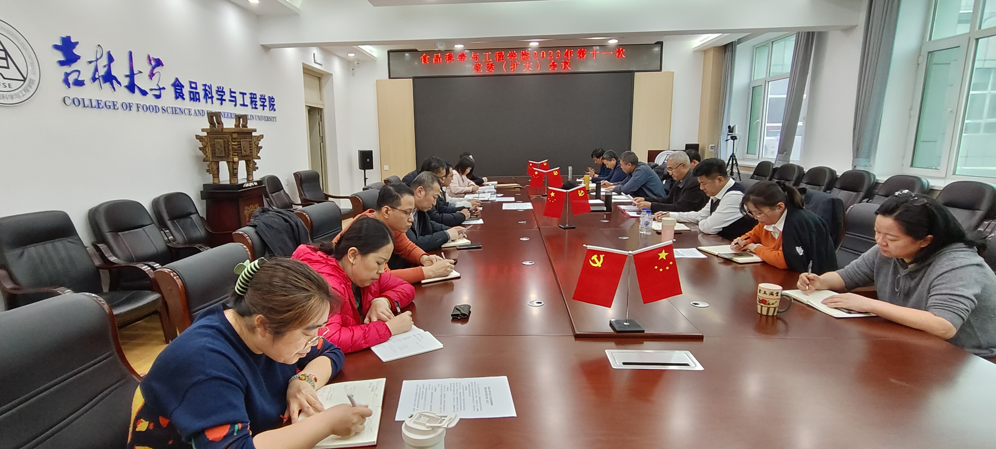 为学习贯彻习近平总书记在全国宣传思想文化工作会议上的重要讲话精神,全面传达落实中国共产党吉林大学第十五届委员会第三次全体会议精神和学校主题教育领导小组办公室关于对主题教育落实情况进行“回头看”的通知要求,11月16日下午,在食品楼312会议室召开了党委(扩大)会议。学校党建联络员籍海春同志到会指导,学院党委委员、领导班子成员、系(教研室)、办、中心主任副主任、团委书记、党支部书记、辅导员参加了会议。会议由学院党委书记董怀智主持。